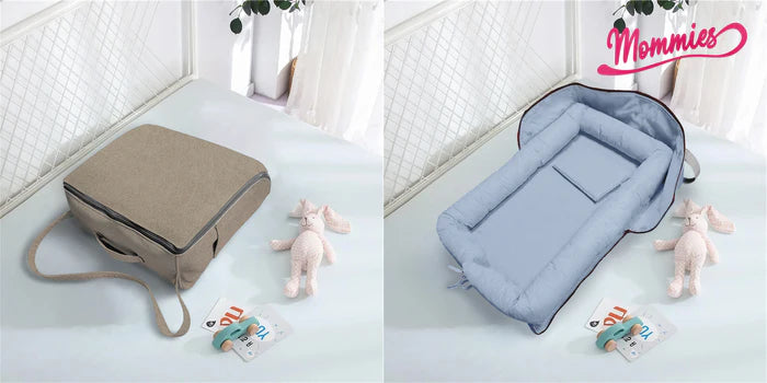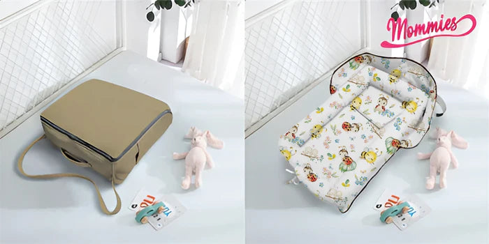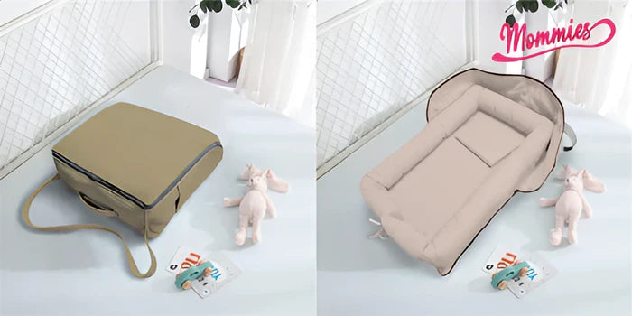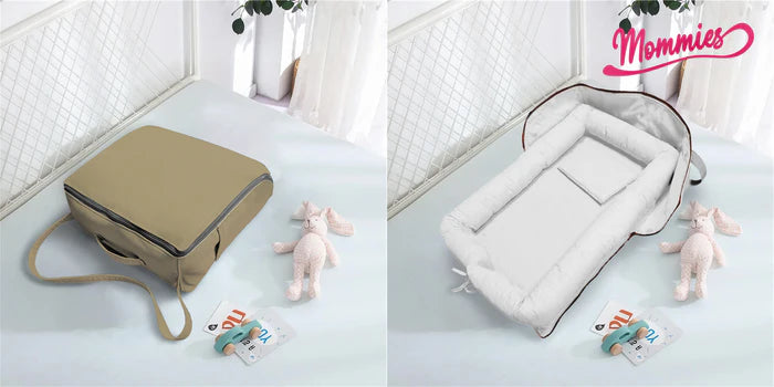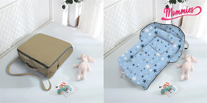 Pătuțul pentru bebeluși Mommies poate fi luat oriunde, deoarece nu ocupă mult spațiu și îi oferă bebelușului confortul și siguranța de care are nevoie.